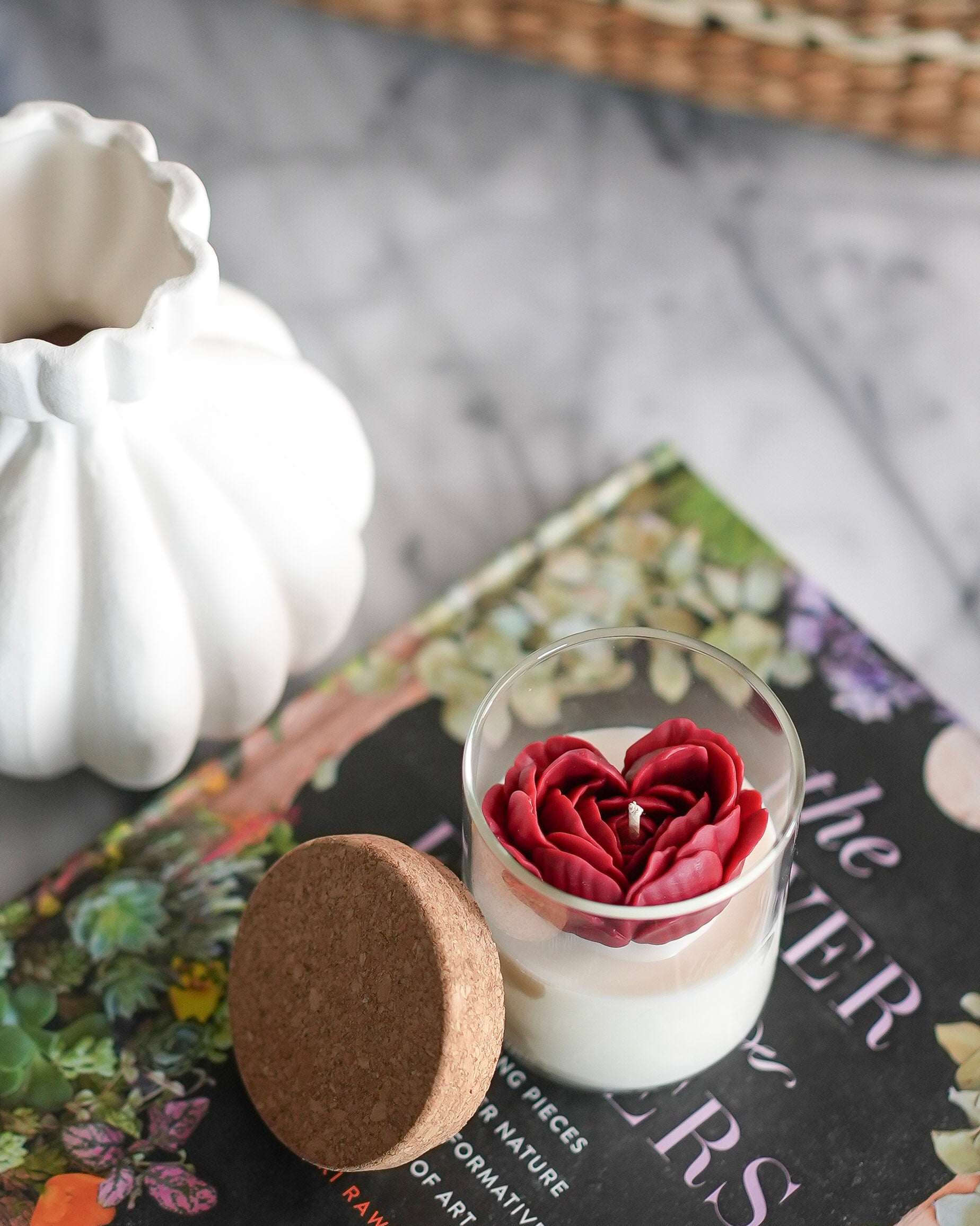 A heart-shaped, rose-red bloom nestled in creamy wax, symbolizing love, romance, and quiet moments together. Scented with Champagne Kisses—a sparkling blend of bubbly champagne, fresh berries, and juicy peach—it fills your space with a light, elegant sweetness. Hand-poured and delicately detailed, it’s perfect for Valentine’s Day, anniversaries, or heartfelt gifting.