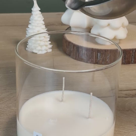 This Winter Wonderland 3-wick candle is brimming with festive, holiday-themed details. Featuring a snow-covered evergreen fir tree, a melted snowman, and a gingerbread man perched on a log, each element captures the enchanting magic of winter.